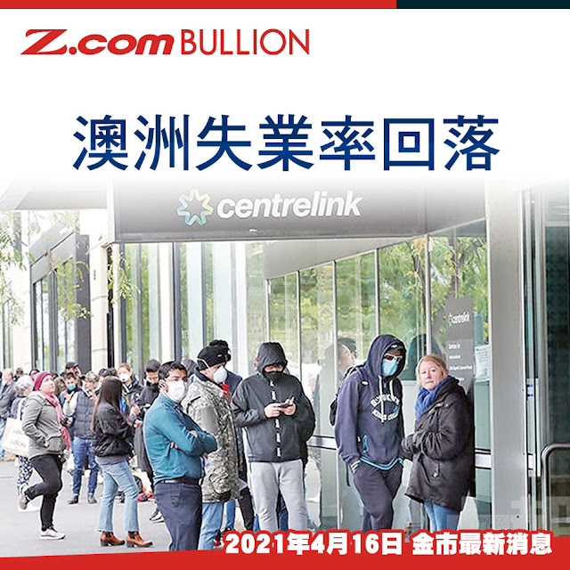 澳洲統計局公布,當地 3 月失業率續回落至 5.6%,較前值回落 0.2 個百分點,亦優於市場預期的5.7%。期內,就業人口增加 7.07 萬份,大幅高於市場預期的 3.5 萬份,惟新增職位全屬兼職就業共增加 9.15 萬,而全職就業則減少 2.08 萬份。澳洲勞工市場持續改善,且企業願意進行大量招聘,便當地勞工市場逐步回復到疫情大流行前的水平。