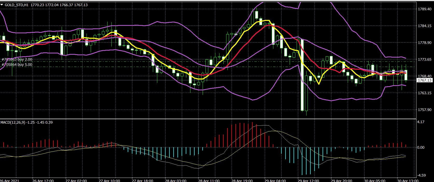 本週黃金價格總體走勢震盪整理,4小時圖上未有明顯趨勢產生,價格在1755-90區間上下。主要看點在基本面上,美元指數此前上升的高點收益基本回吐,呈現下行趨勢,美債收益率降低,間接刺激黃金價格的浮動潛在動能。除此之外,印度疫情爆發嚴重,病毒發生變異,日增感染者以數十萬計,引發避險情緒上升,提振了黃金市場交易信心。但是,美國就業以及基建等經濟數據普遍向好,美聯儲量化寬鬆刺激經濟的動力減弱,反向打壓了黃金價格的進一步上漲。