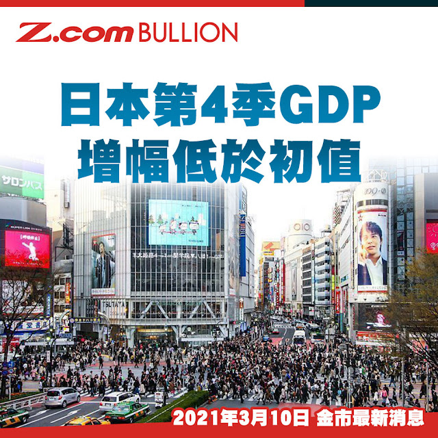 日本公布去年第 4 季國內生產總值(GDP)終值增長向下修訂至 11.7%,增幅低於初值的 12.7,但為連續第 2 季出現雙位數字增長。不過,日本 1 月份家庭支出按年則意外下跌 6.1%,跌幅大於市場預期的下跌 2.1%,前值為下跌 0.6%,反映於疫情限制措施之下,正嚴重打擊市民消費意欲。上周,日本首相菅義偉將東京地區的緊急狀態延長至 3 月 21 日,使市場憂慮當地首季經濟於缺乏內需支持下,可能會出現大幅放緩情況。