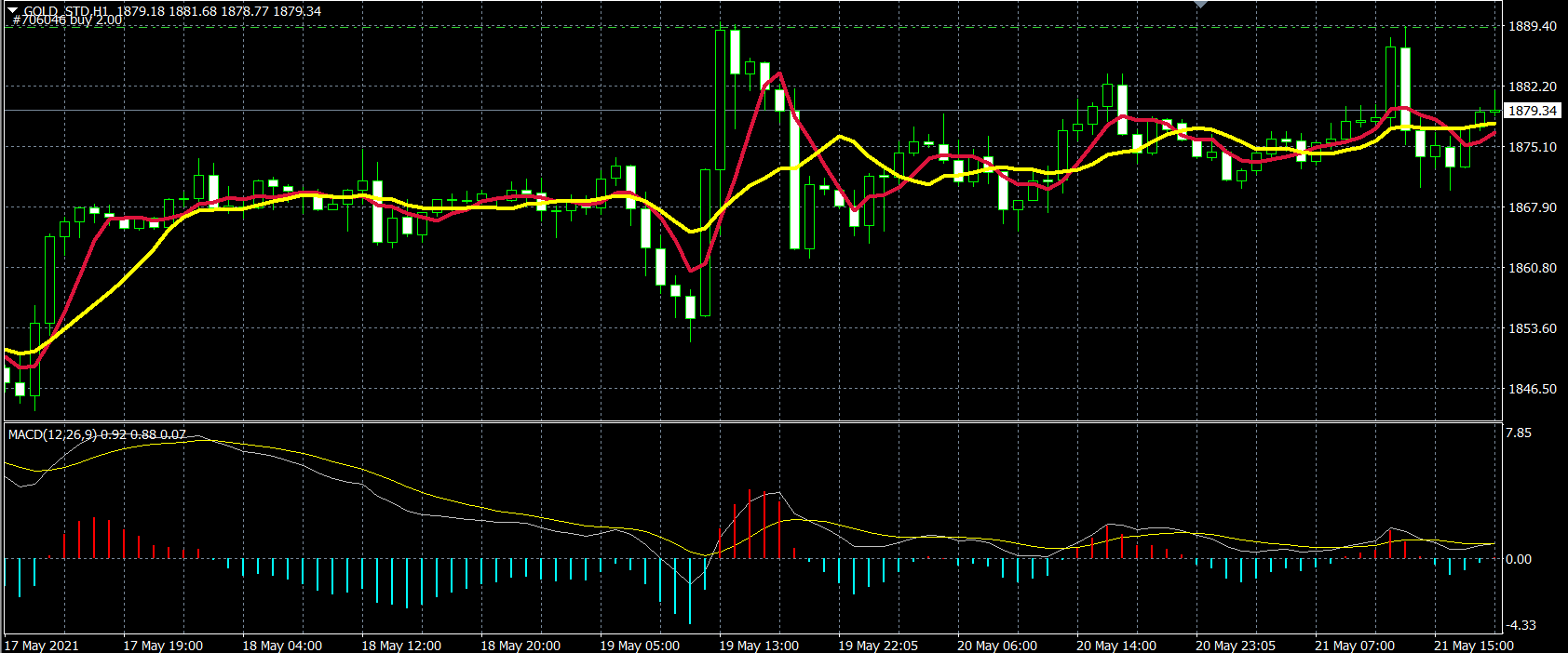Currently the K-line shows that the price is still in an uptrend, with clear upwards momentum. The MACD indicator is above the 0 level, with both lines crossing each other, which we expect to start another uptrend. However, we see 1,890 and 1,900 as strong resistance levels, so we expect the market to test the 1,890 level first. If this level is penetrated then it will likely reach the 1,900 key level.